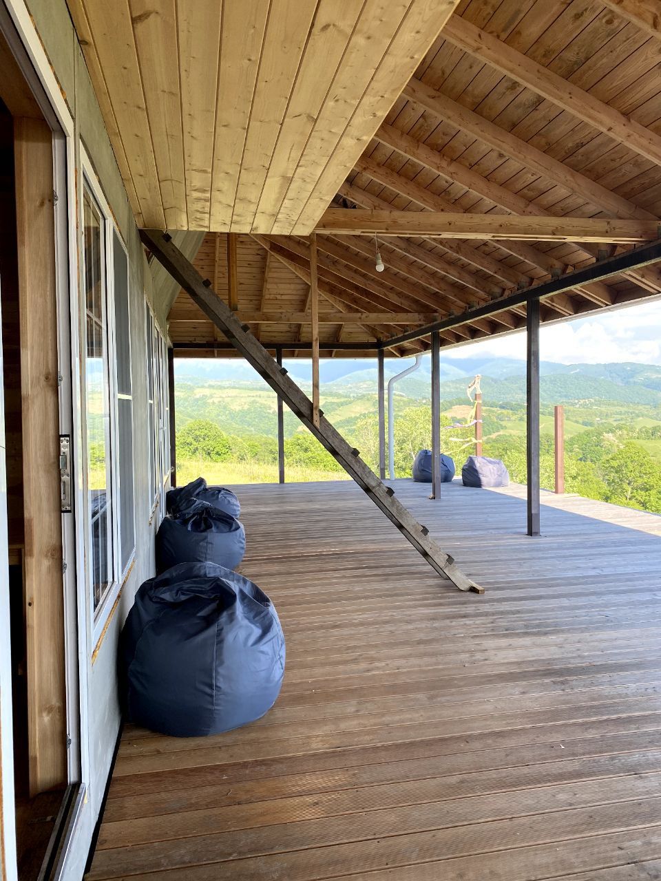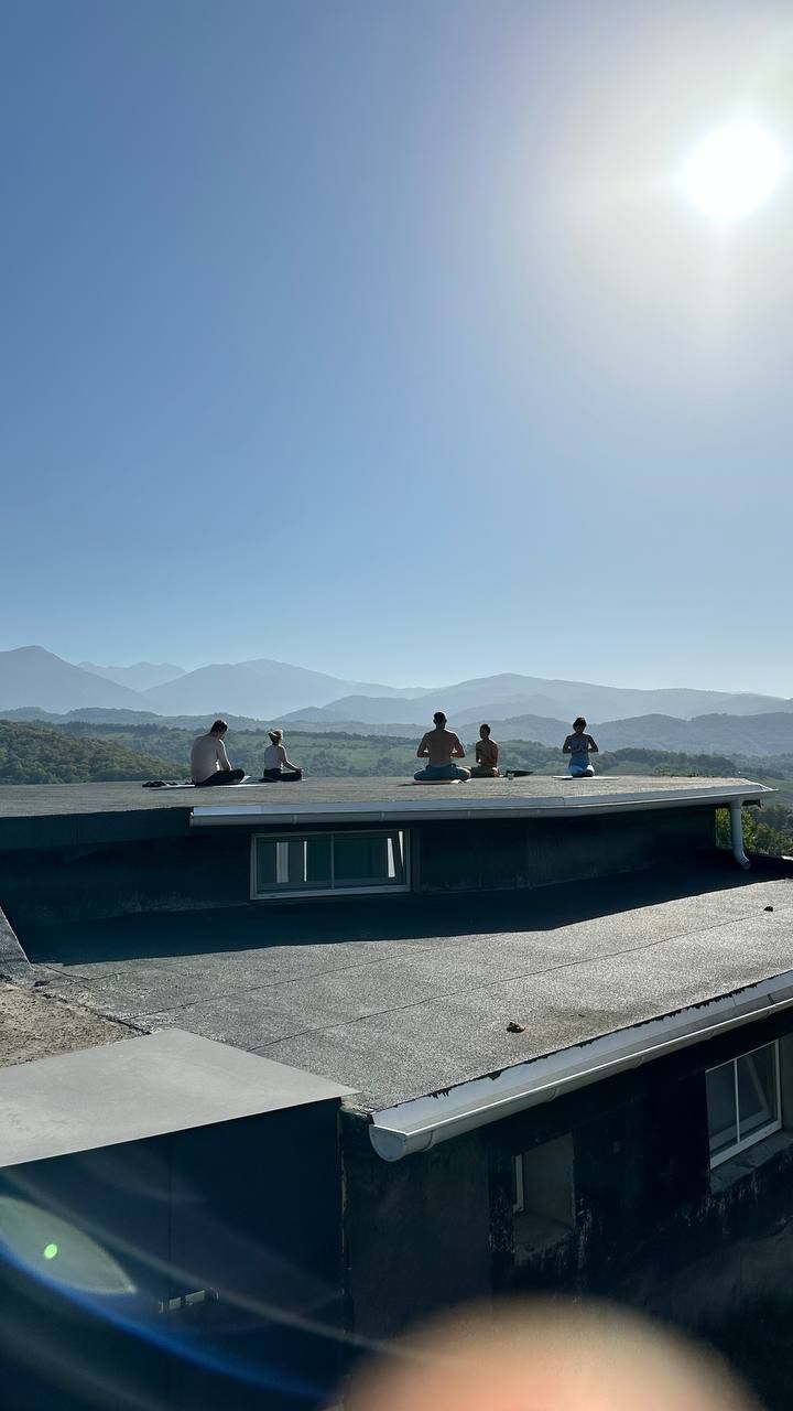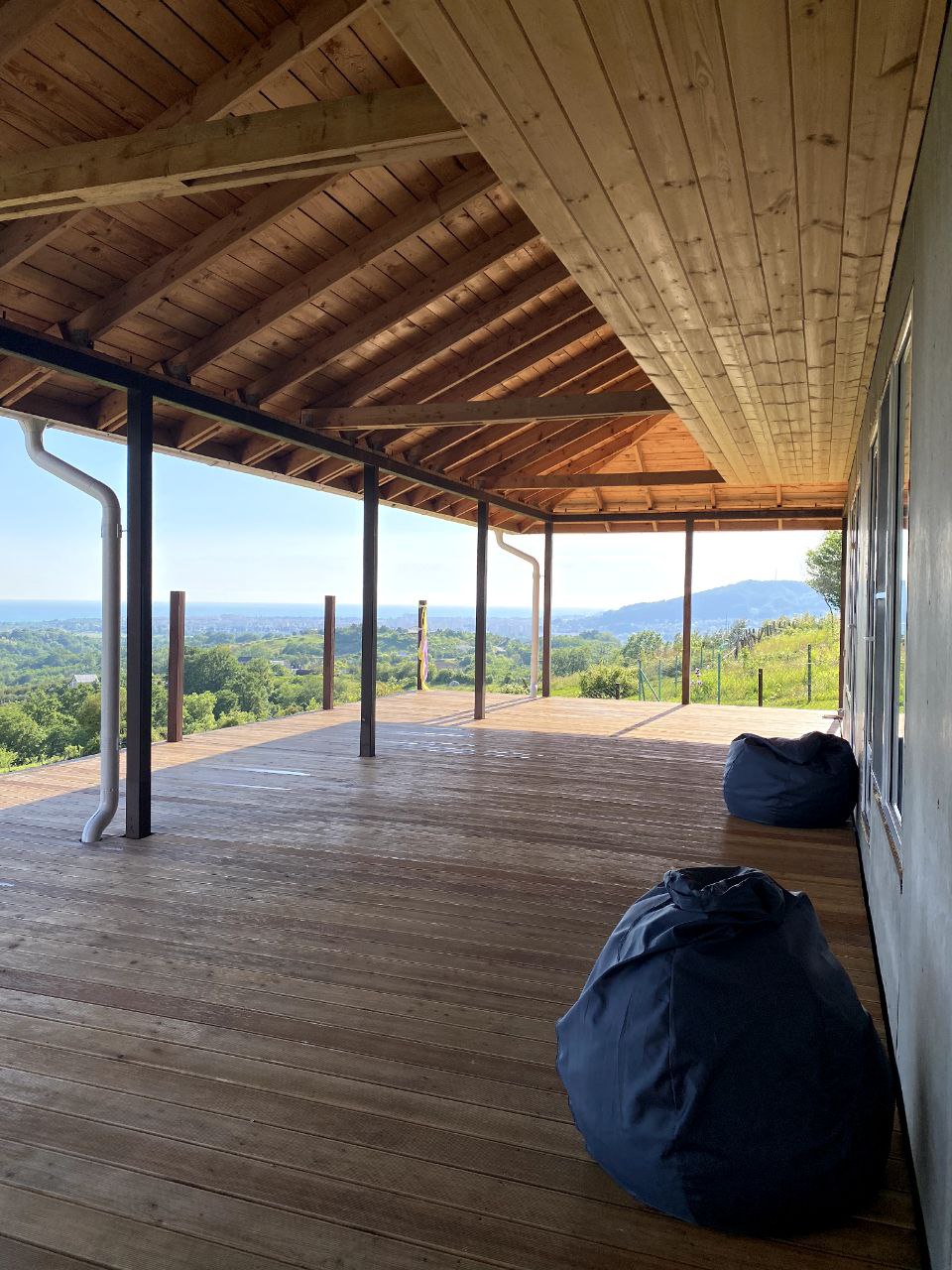 5. Мы проживаем в доме на холме. Вокруг прекрасный панорамный вид на бесконечные холмы и горы Кавказа, Черное море и Олимпийскую деревню. Вид с террасы дает ощущение открытого пространства. Мы постоянно находимся на территории нашего ретритного комплекса, не выходя за его пределы в течение всего срока программы. Если включены путешествия - перемещаемся на 10 местном микроавтобусе.