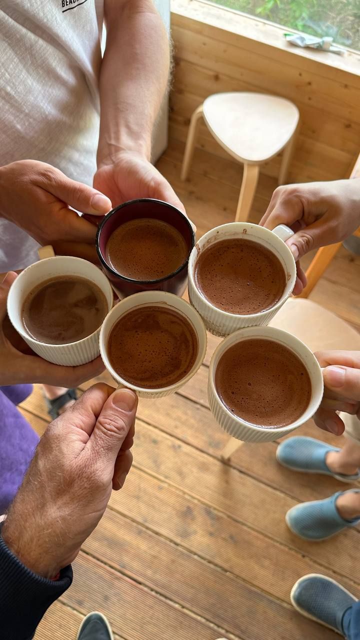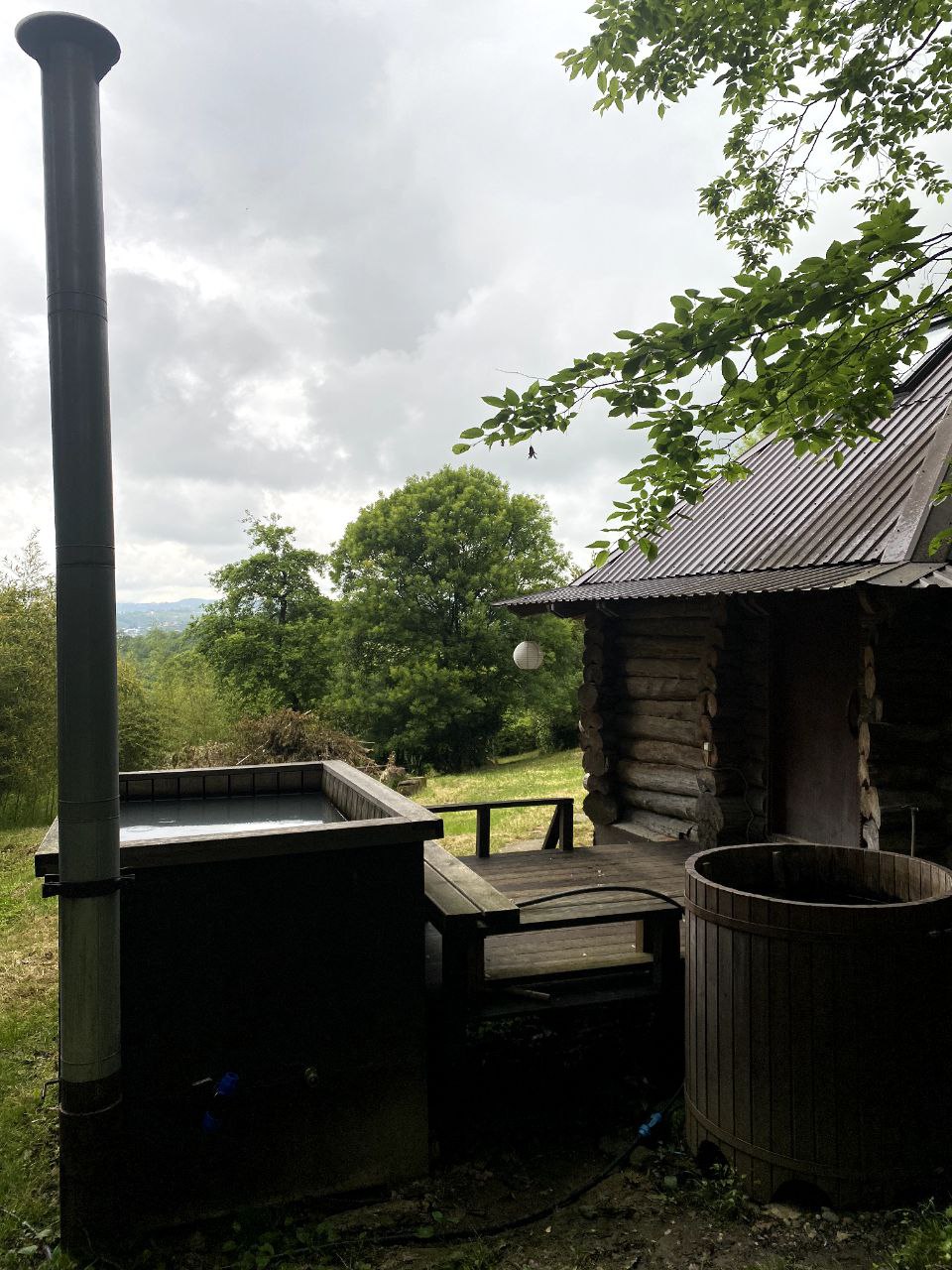 Есть настоящая деревянная баня на дровах, с двумя купелями под открытым небом в лесу! 🌿🌿Веники конечно местного производства🌱заготовки для них растут рядом)