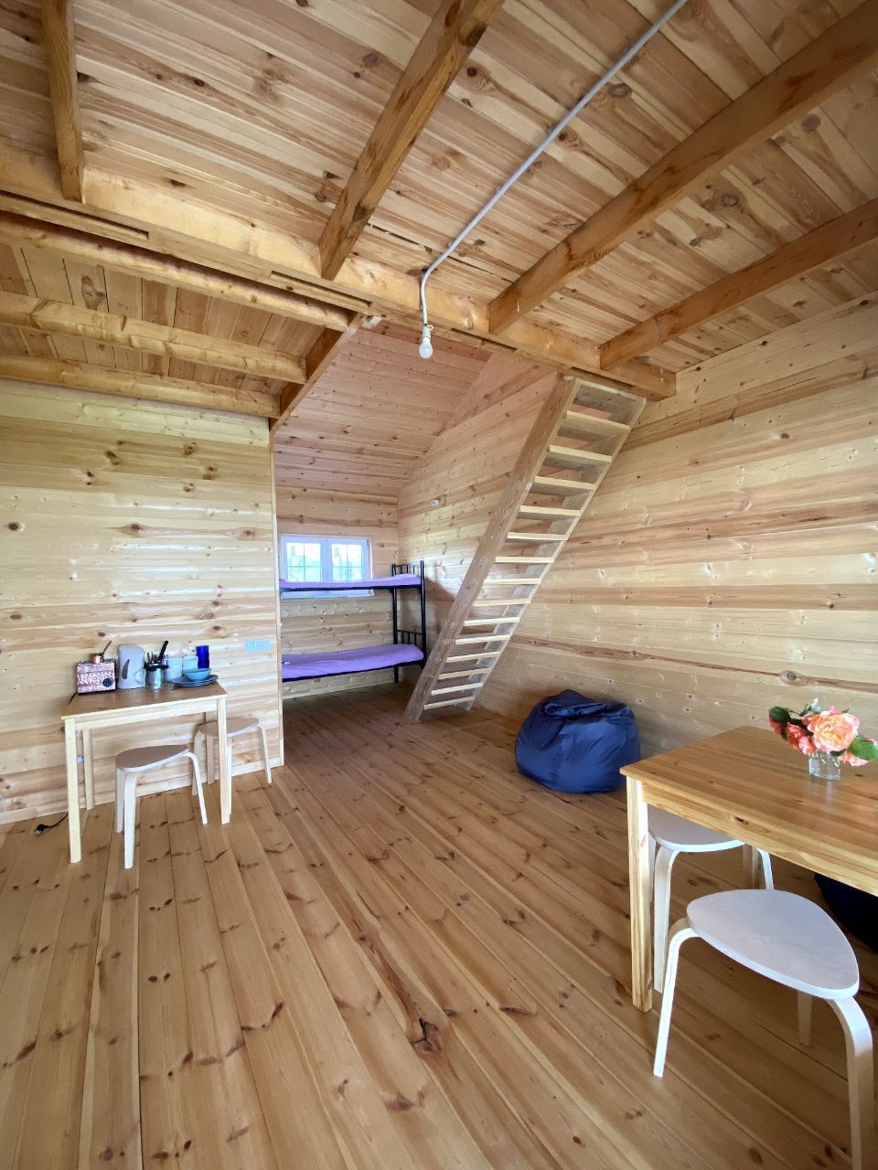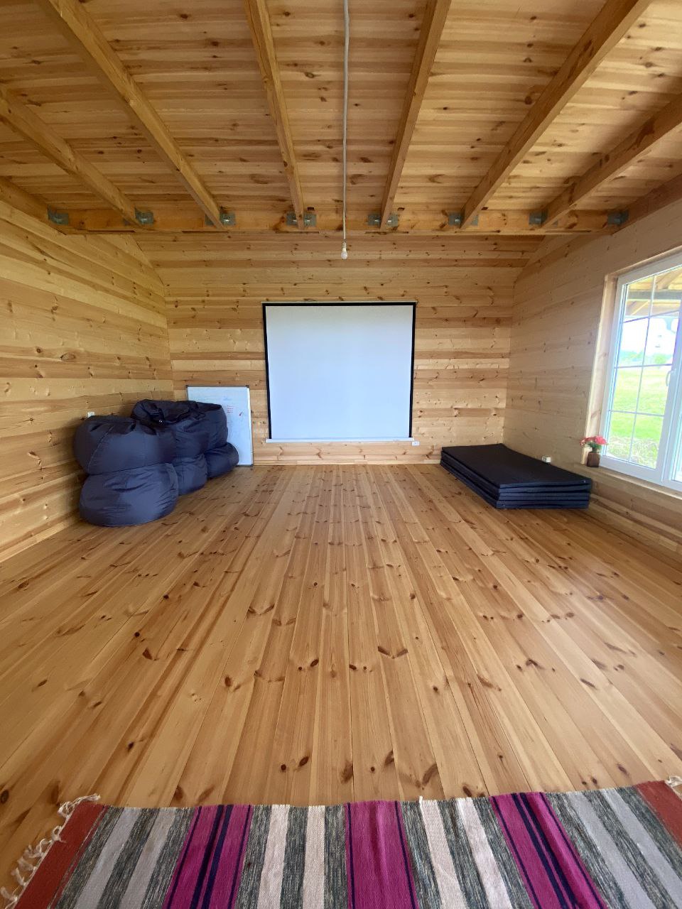 Отдельно стоящий зал на 20 человек для дыхательных и телесных практик, с открытой площадкой на крыше.